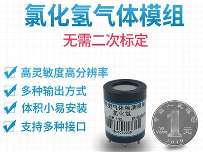 氯化氫傳感器模組量程0-50ppm,分辨率0.1ppm,工作電壓5V+-2%,功耗<=0.2W